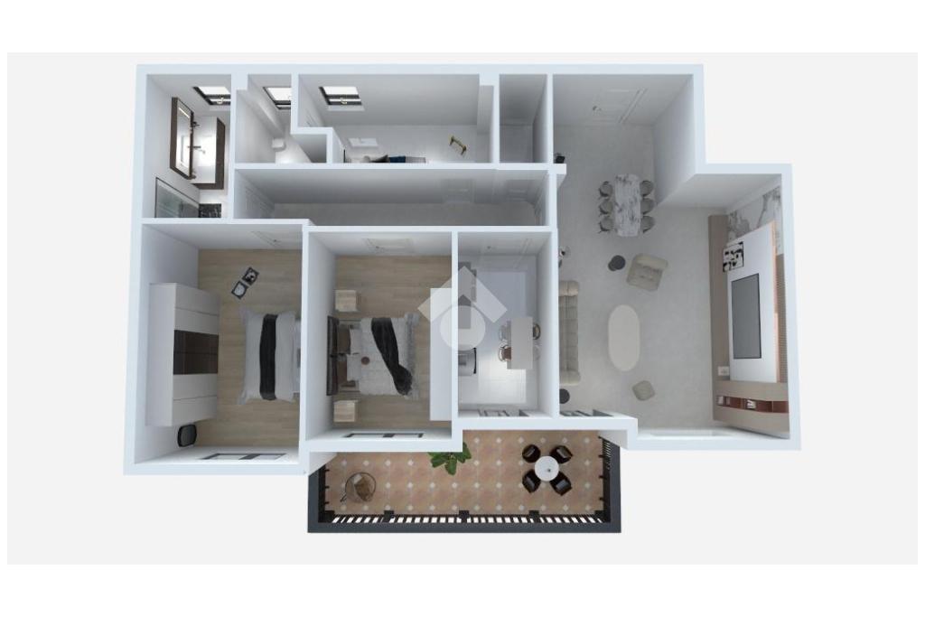 La zona giorno è composta da un soggiorno ampio e accogliente, ideale per vivere la casa e ricevere ospiti, con accesso diretto al terrazzino abitabile, e da una cucina separata e completamente abitabile, anch’essa collegata all’esterno: uno spazio ideale per colazioni e pranzi all’aperto.