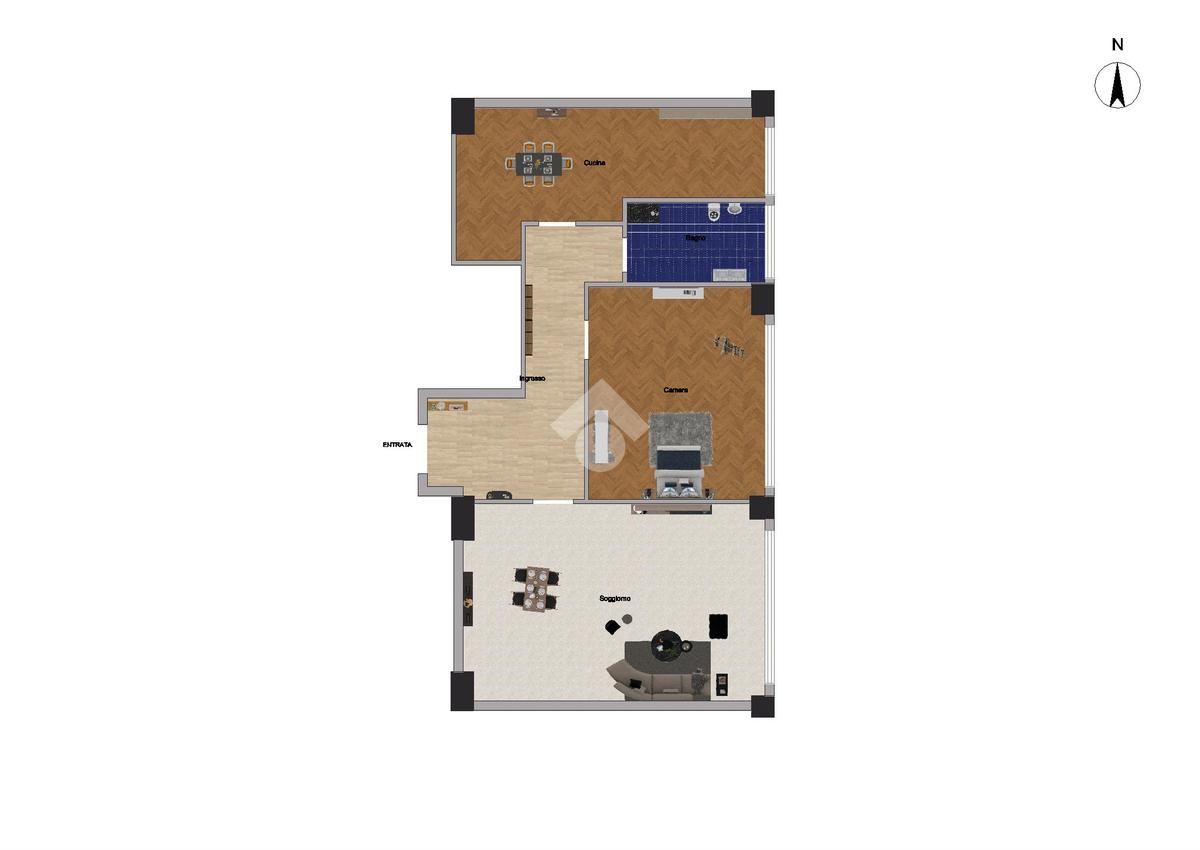 L’immobile è composto da un accogliente soggiorno, cucina separata, una camera da letto e un bagno finestrato con doccia. L’intera superficie è impreziosita da un parquet, che dona calore ed eleganza a tutti gli ambienti.